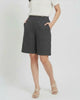 Pria Pelle Bermuda Shorts | Back garter - Cotton Blend Plaid Charcoal Gray | Non Stretch